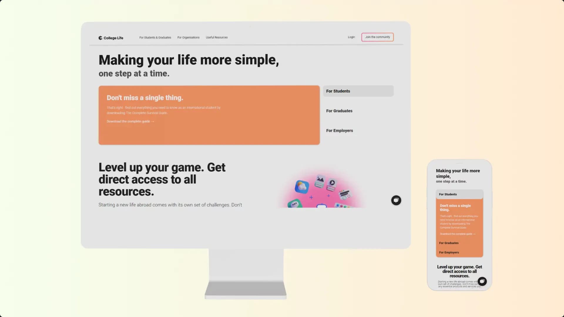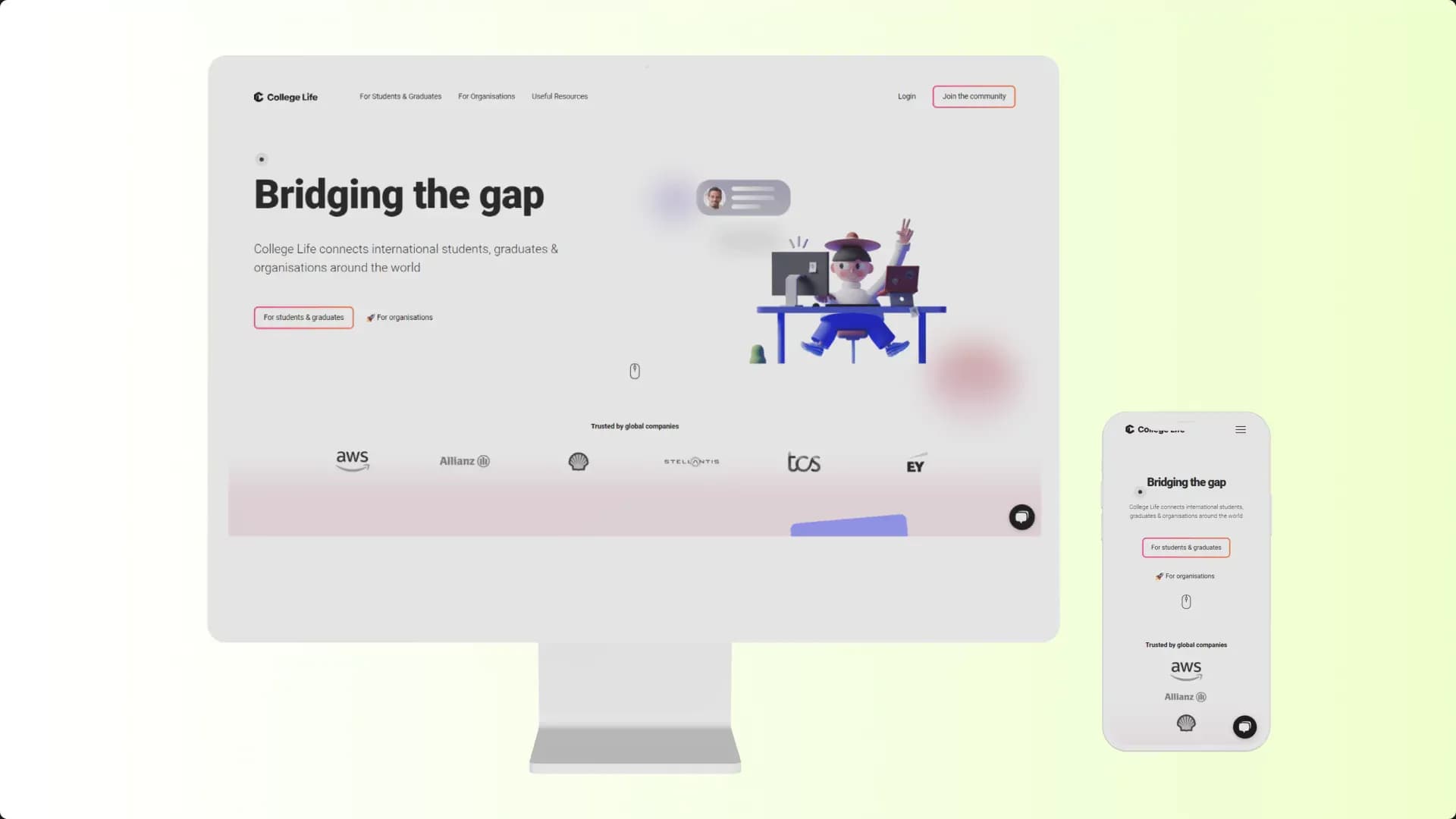 College Life offers complete guides & articles that will help the students to get started, integrate & become the best version of them in a foreign country. Also the College Life Work helps organisations to target the best international students & young alumni from the world’s top universities. We integrated an email marketing system in order to transform the website into a portal to a large community of international students & graduates in each country. In this way the students will not miss out on any essential products and services they need, no matter where they are in the world.